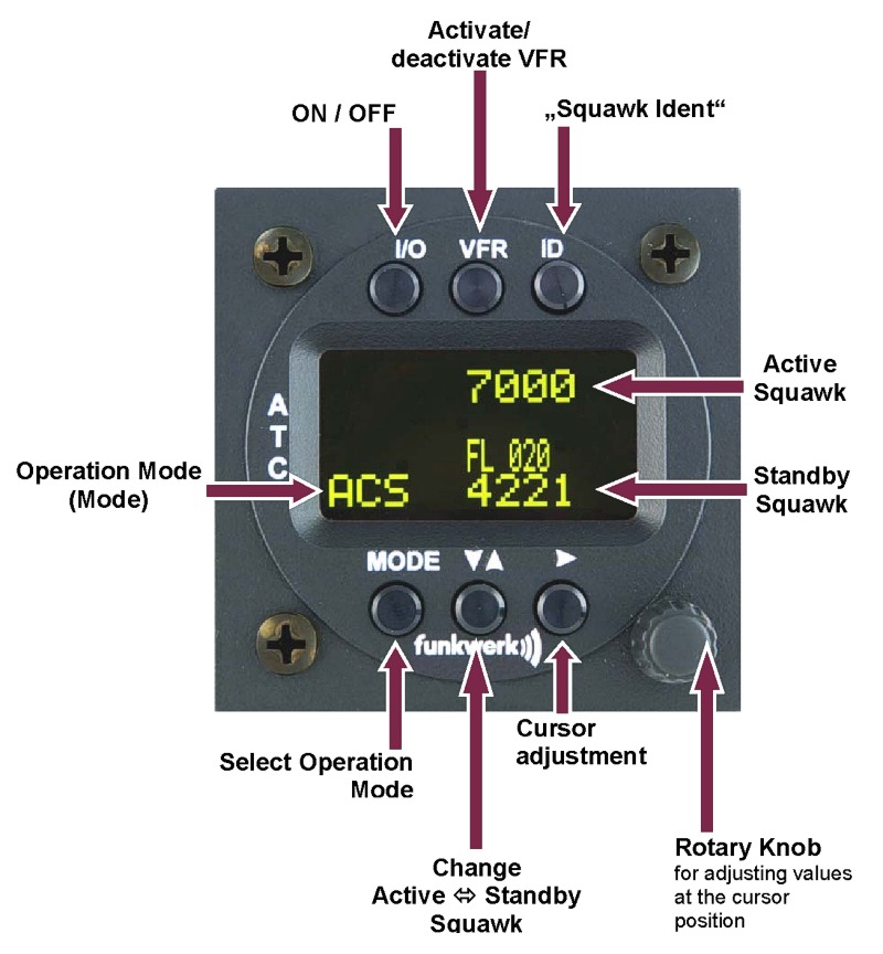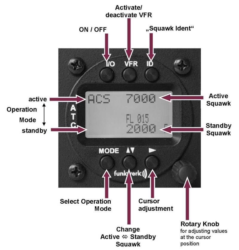 Features: 250 watt, full featured, EASA certified Class 1 transponder 4-line OLED display show active and stand-by code FAA certified for VFR and IFR operation operating modes: Mode A/C, Mode-S integrated altitude encoder up to 35,000 ft fits in standard 2.25" round instrument panel hole easy operation German quality -- full two-year warranty |
